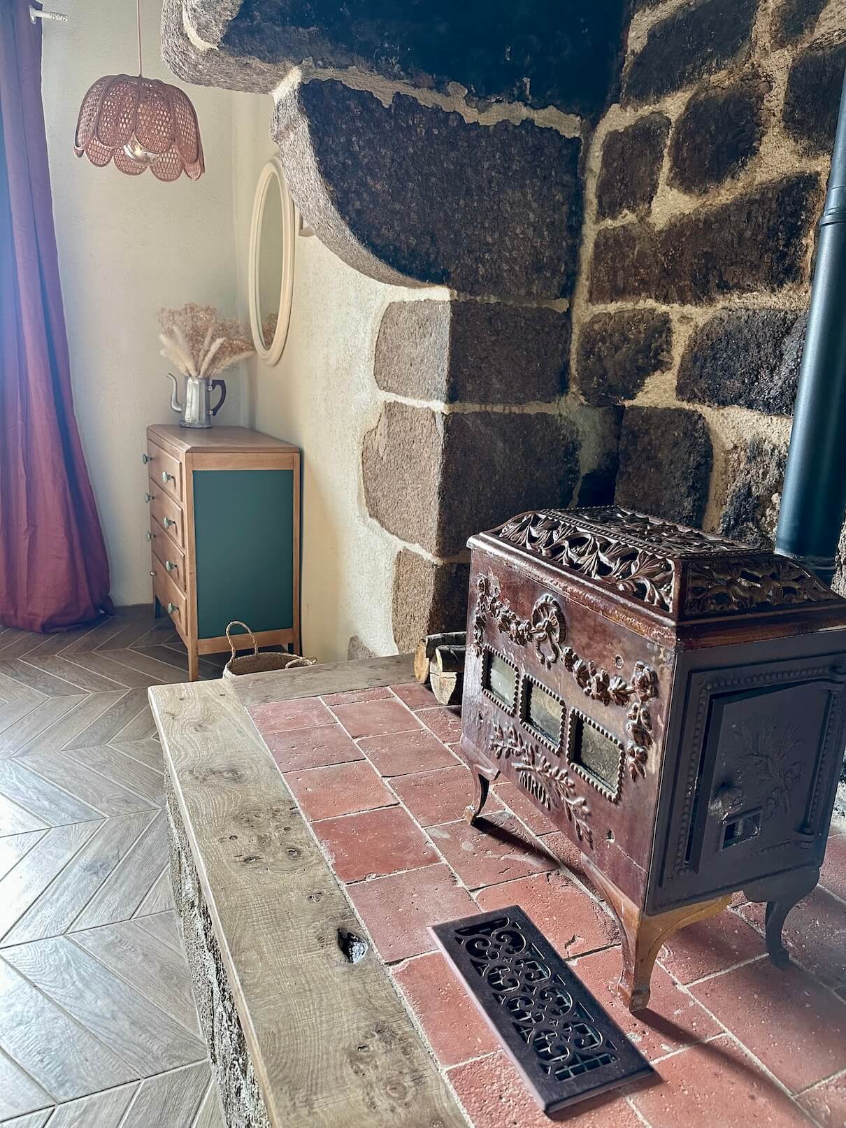 Posez vos valises dans cette chambre d'hôtes romantique en Bretagne et laissez-vous envelopper par la chaleur réconfortante du poêle. Conçue comme un véritable cocon, cette chambre allie élégance et sérénité pour une pause hors du temps. Le sol en parquet céramique apporte une touche naturelle, tandis que la lumière douce crée une ambiance apaisante.
